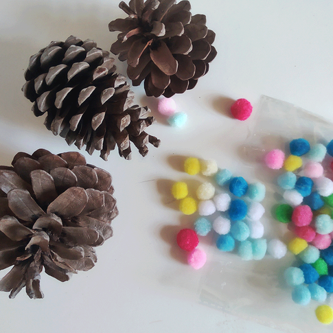 - Una piña de pino, abierta y lo más simétrica posible.